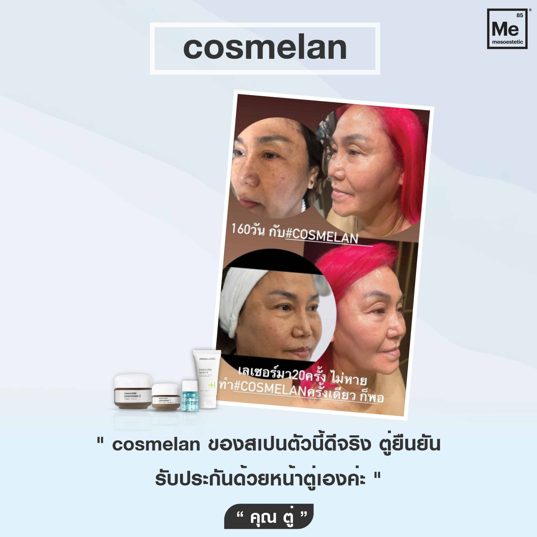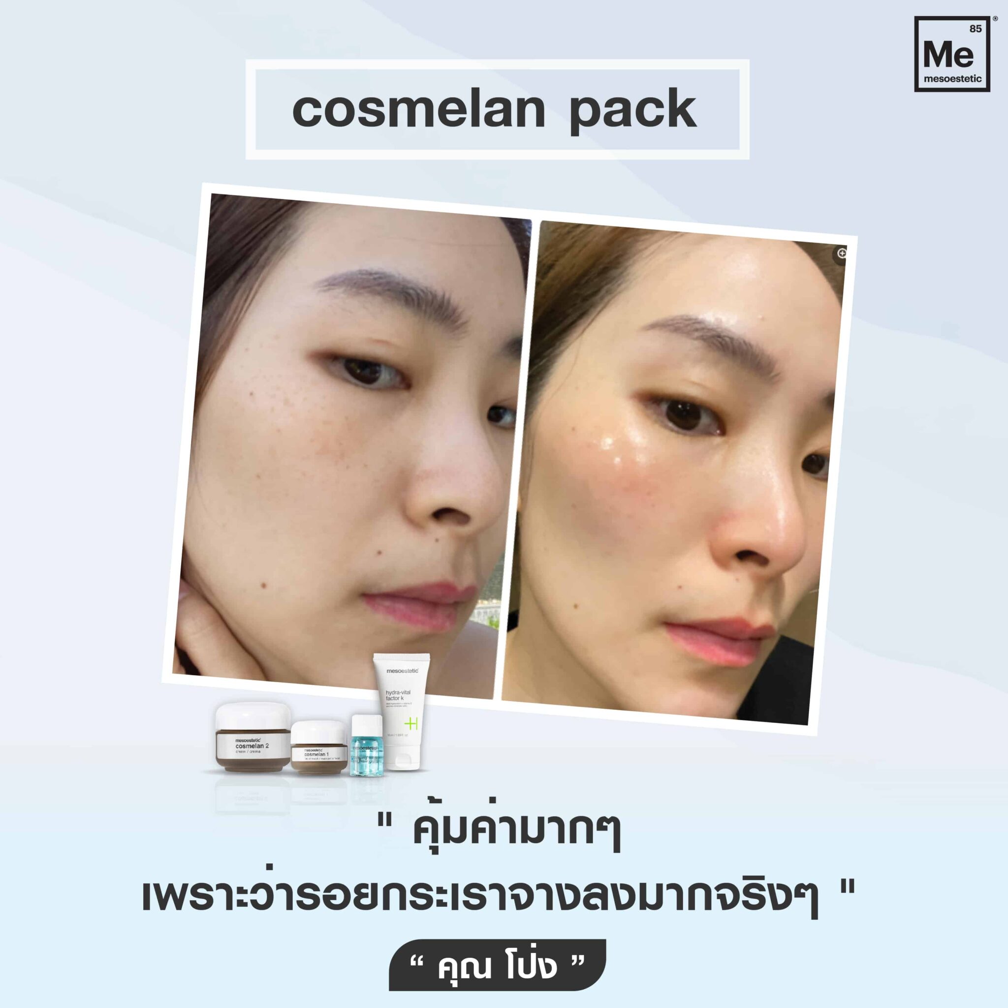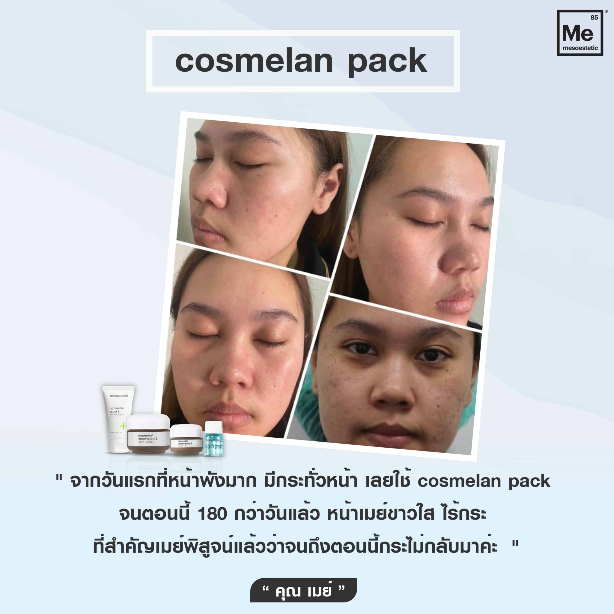 ผลลัพธ์หลังการใช้ cosmelan จะอยู่ยาวนานต่อเนื่อง ควรใช้ผลิตภัณฑ์ในการดูแลผผิวกลุ่ม Melantran 3x และ กันแดด หลังจบโปรแกรม cosmelan เพื่อคงรักษาผลลัพธ์ให้อยู่กับผิวได้ยาวนานมากยิ่งขึ้น
