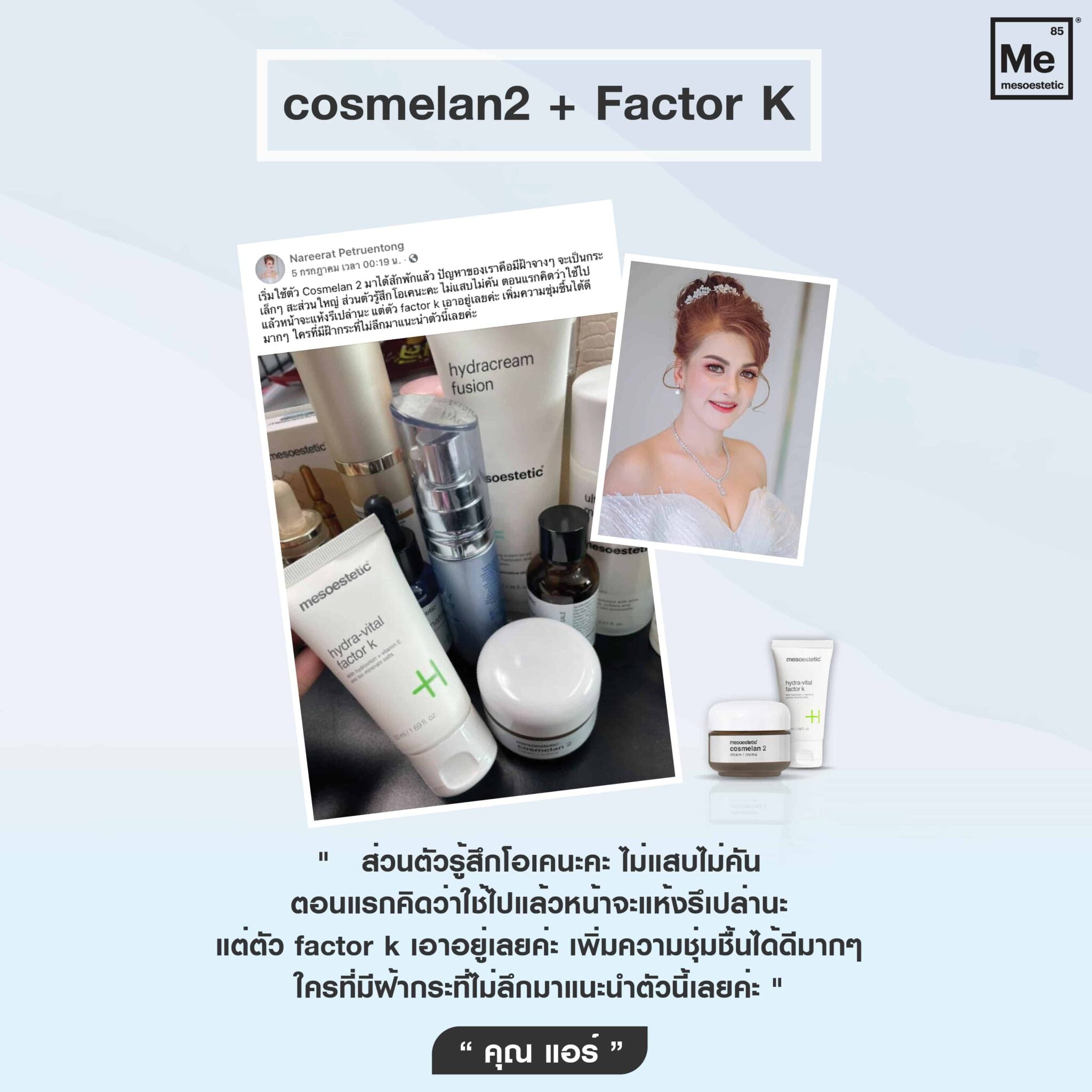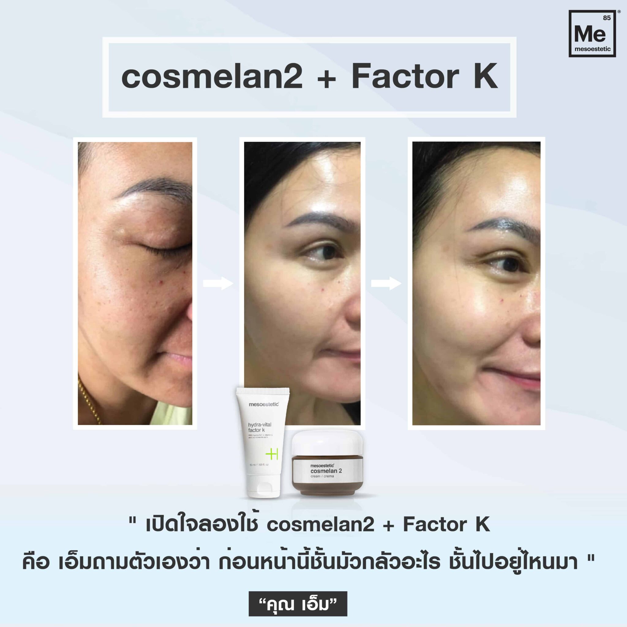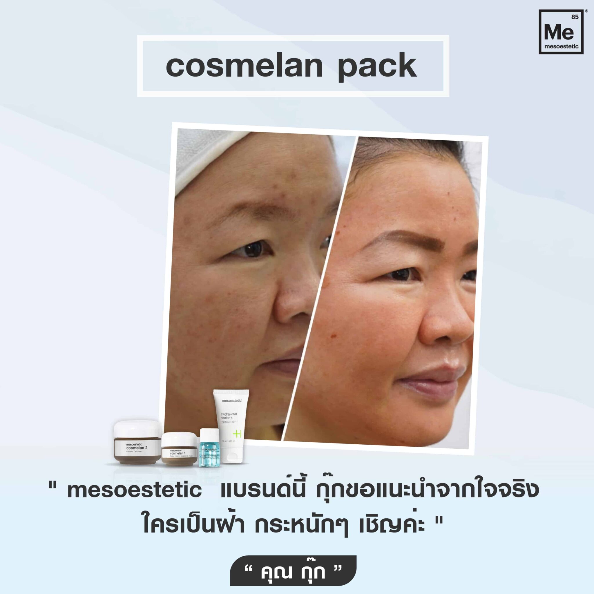 ผลลัพธ์หลังการใช้ cosmelan จะอยู่ยาวนานต่อเนื่อง ควรใช้ผลิตภัณฑ์ในการดูแลผผิวกลุ่ม Melantran 3x และ กันแดด หลังจบโปรแกรม cosmelan เพื่อคงรักษาผลลัพธ์ให้อยู่กับผิวได้ยาวนานมากยิ่งขึ้น